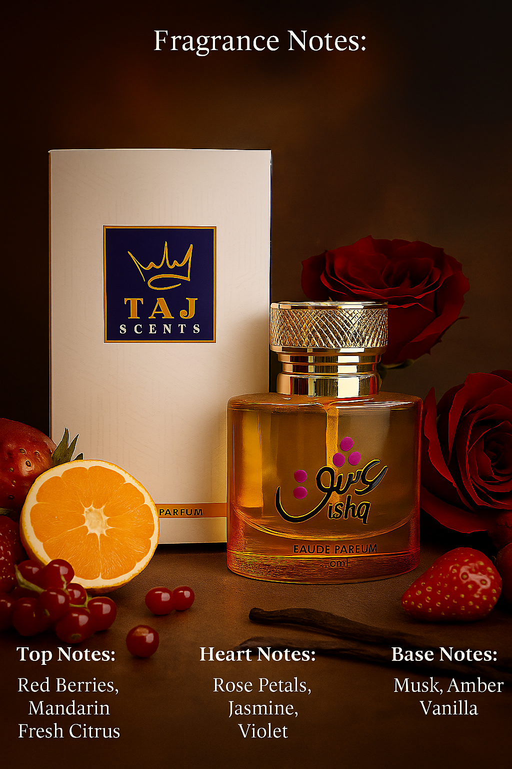 Ishq is a fragrance of pure passion — deep, romantic, and soulful. Designed to capture the intensity of love, it blends sweet floral notes with warm woods, creating a scent that lingers beautifully on the skin.